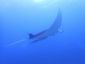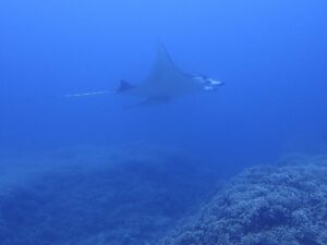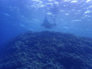 キラキラ珊瑚畑を飛び去るマンタ様でした。