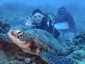 昨日はタイマイだったので今日はアオウミガメ観察