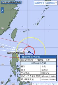 遠く南方にある台風ですが、直撃は避けたものの勢力がとてつもなくデカいので